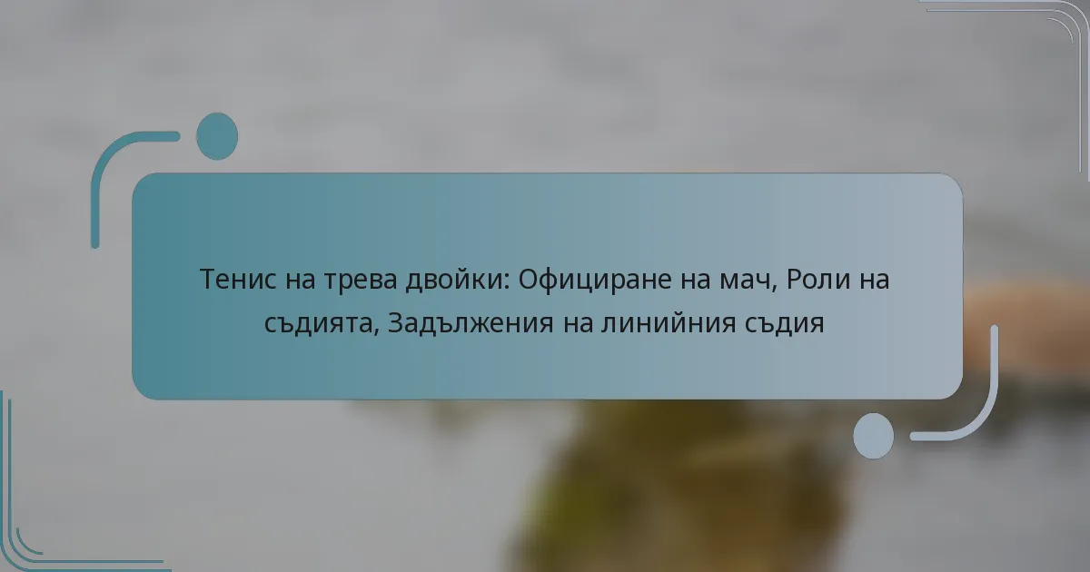 Съдийството на мач по двойки включва структурирано подход за осигуряване на честна игра и спазване на правилата. Ролите на съдиите и линийките са от съществено значение за поддържането на целостта на играта, управлението на спорове и правенето на точни отсъждания през целия мач.