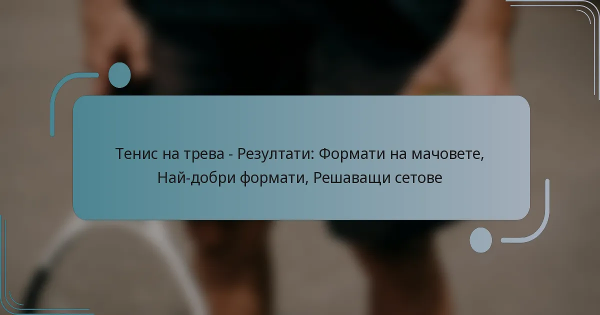 Тенисът на трева предлага различни формати на мачовете, които значително влияят на игровия процес и стратегиите, основно категоризирани по брой играчи и системи за оценяване. Най-разпространените формати включват най-добри от три сета и най-добри от пет сета, които определят колко сета трябва да спечели един играч, за да осигури победа. Освен това, решаващите сетове влизат в игра, когато играчите са равни, често изисквайки специфична разлика, за да се определи победителят.