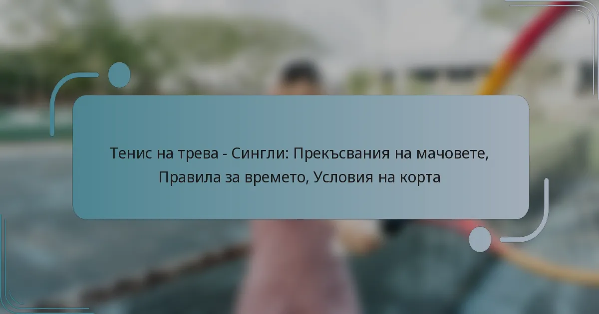 Прекъсванията на мачовете в единичния тенис на трева настъпват, когато играта бъде спряна поради различни фактори, като метеорологични условия или наранявания на играчите. Разбирането на правилата, свързани с тези прекъсвания, е от съществено значение както за играчите, така и за зрителите, тъй като те диктуват как и кога мачовете могат да продължат.